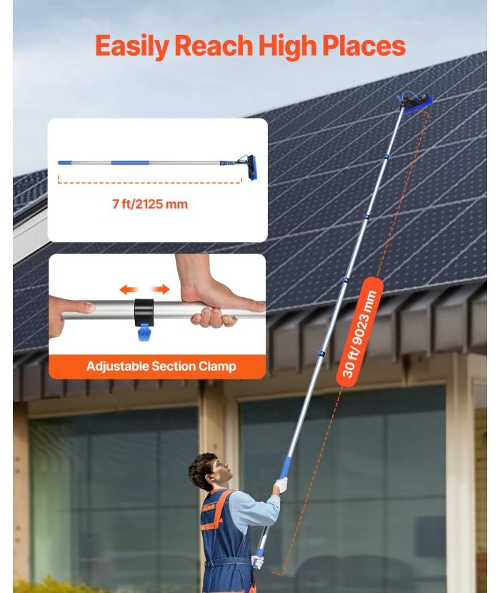 ✅ Nettoyage haute portée sans échelle – Atteint jusqu’à 12 m en toute sécurité.